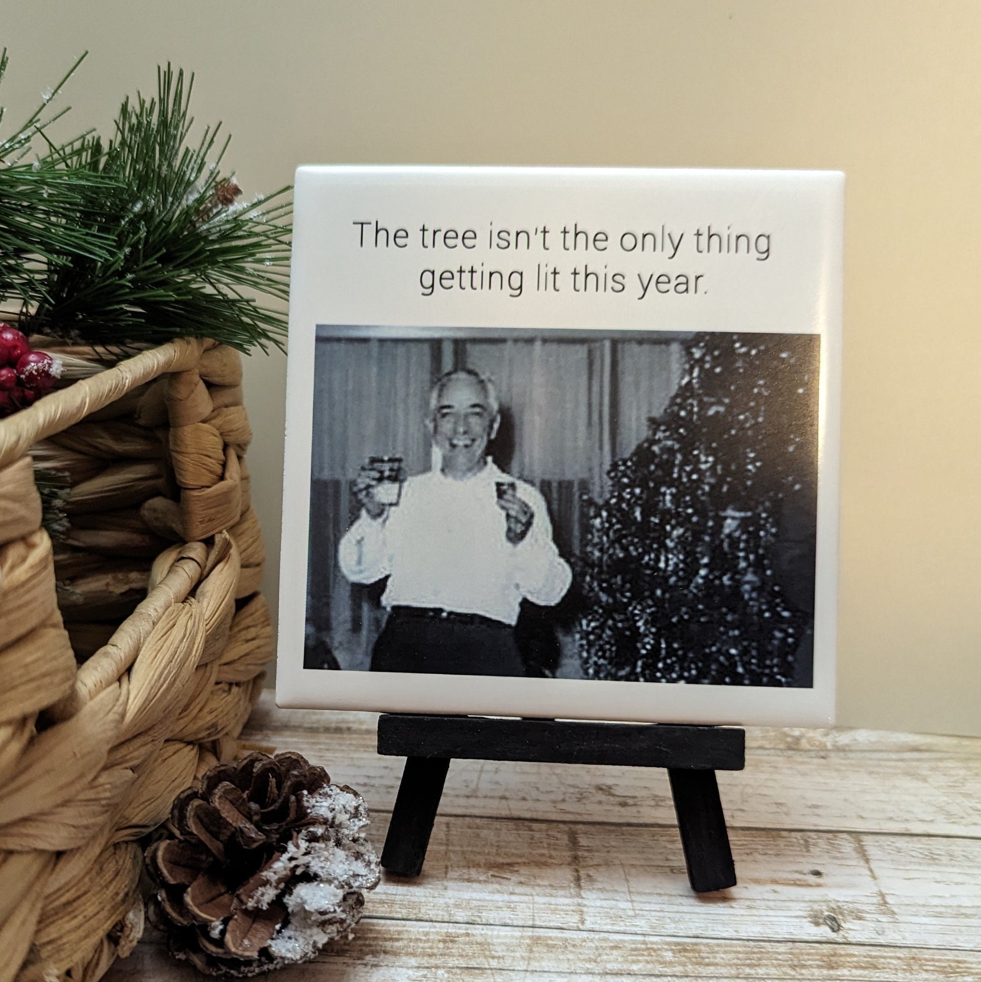Something about vintage photos just seems a bit snarkier than photos of today. Our funny Christmas easel signs have a vintage image accompanied by a snarky comment. Great for gifting or even for yourself. They're ceramic and measure just over 4". Your choice of black or natural easel (included)