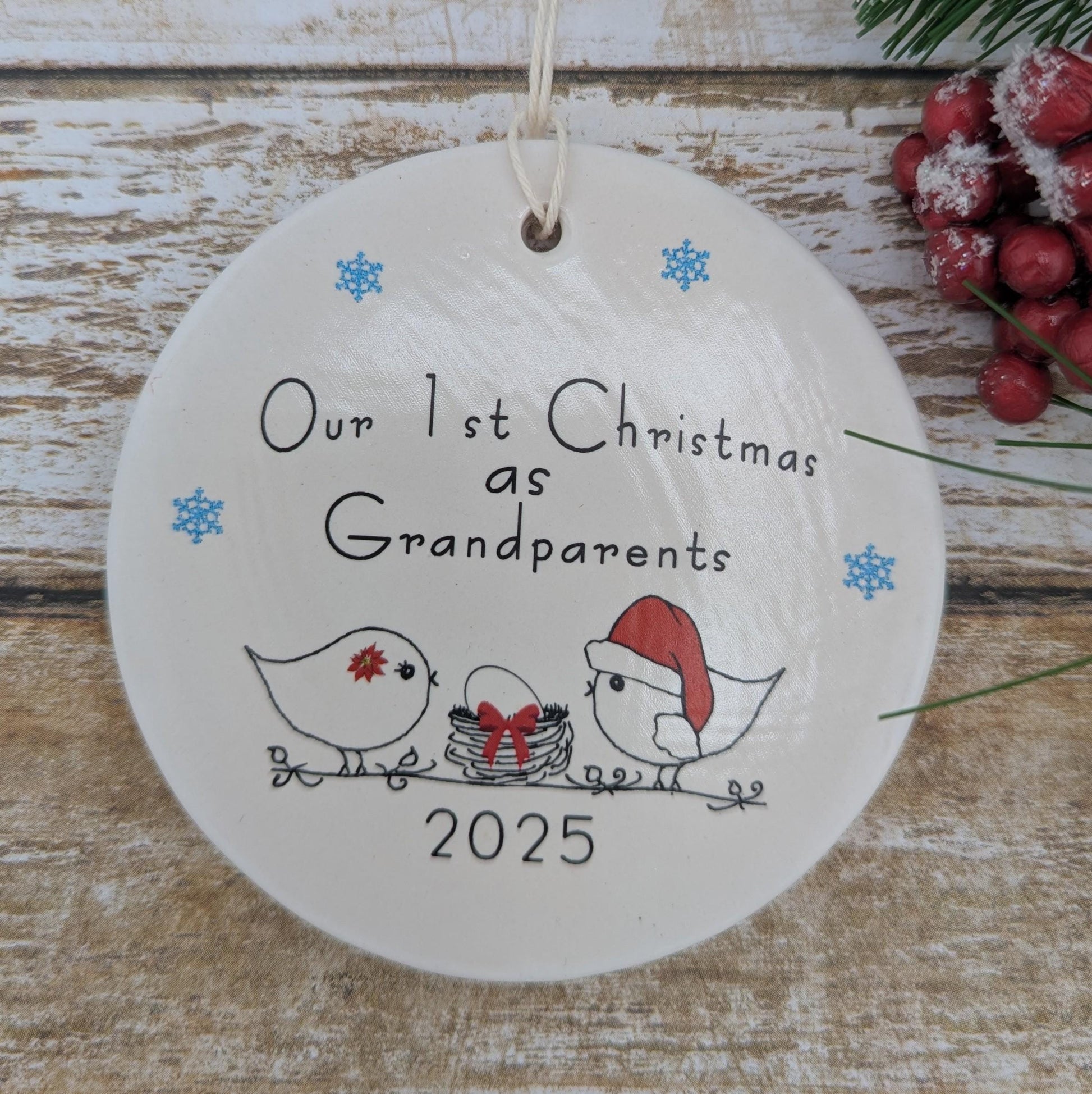 Sweet and simplistic, our adorable line drawn grandparent expecting ornaments are a perfect way to celebrate grandparents and their grandchild. Great way to announce your big news!