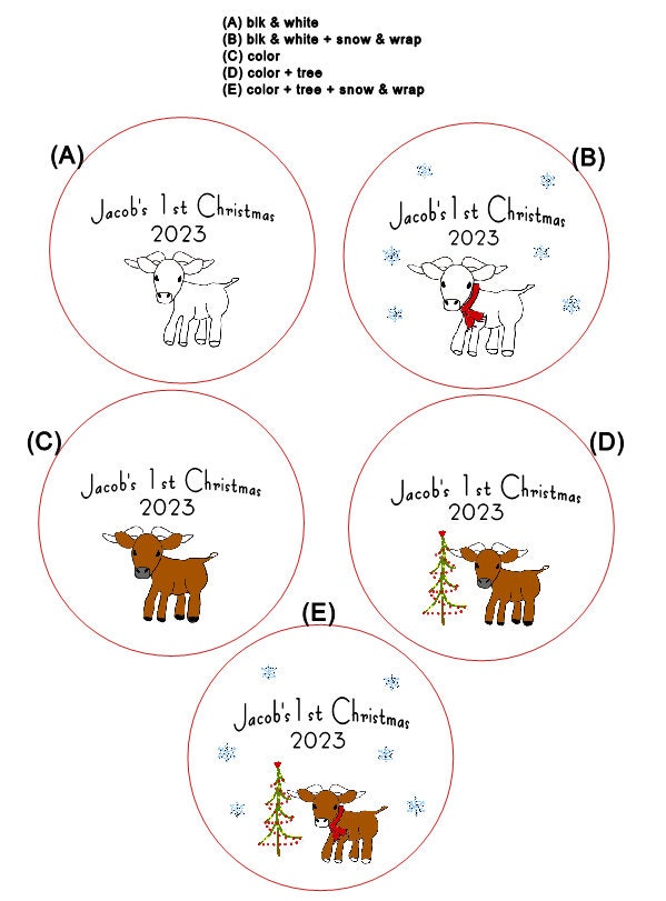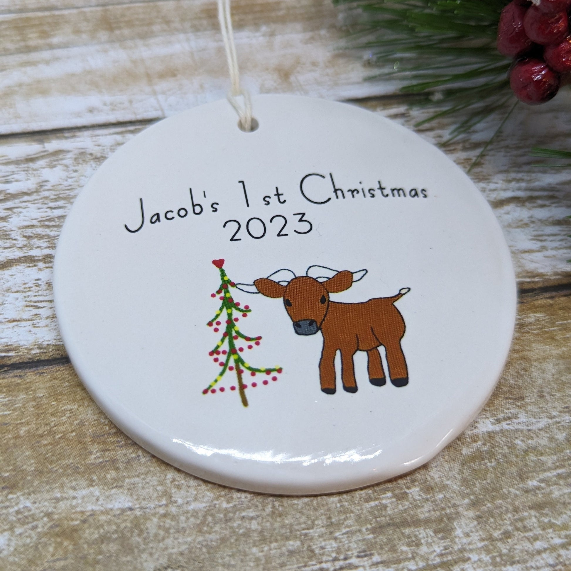 Ornament: Personalized Line Drawn Baby's First Christmas, Cow