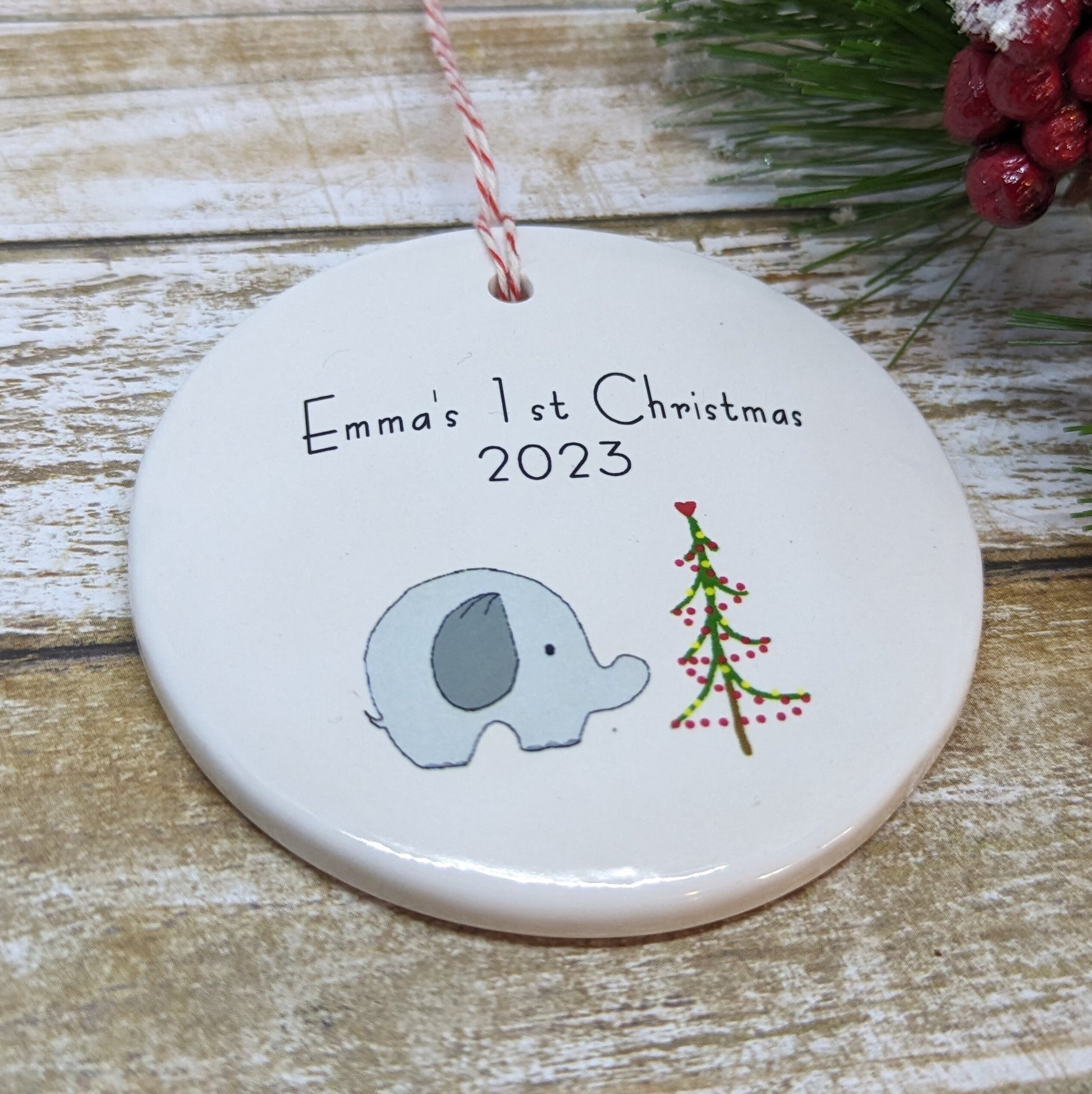 Ornament: Personalized Line Drawn Baby's First Christmas, Elephant