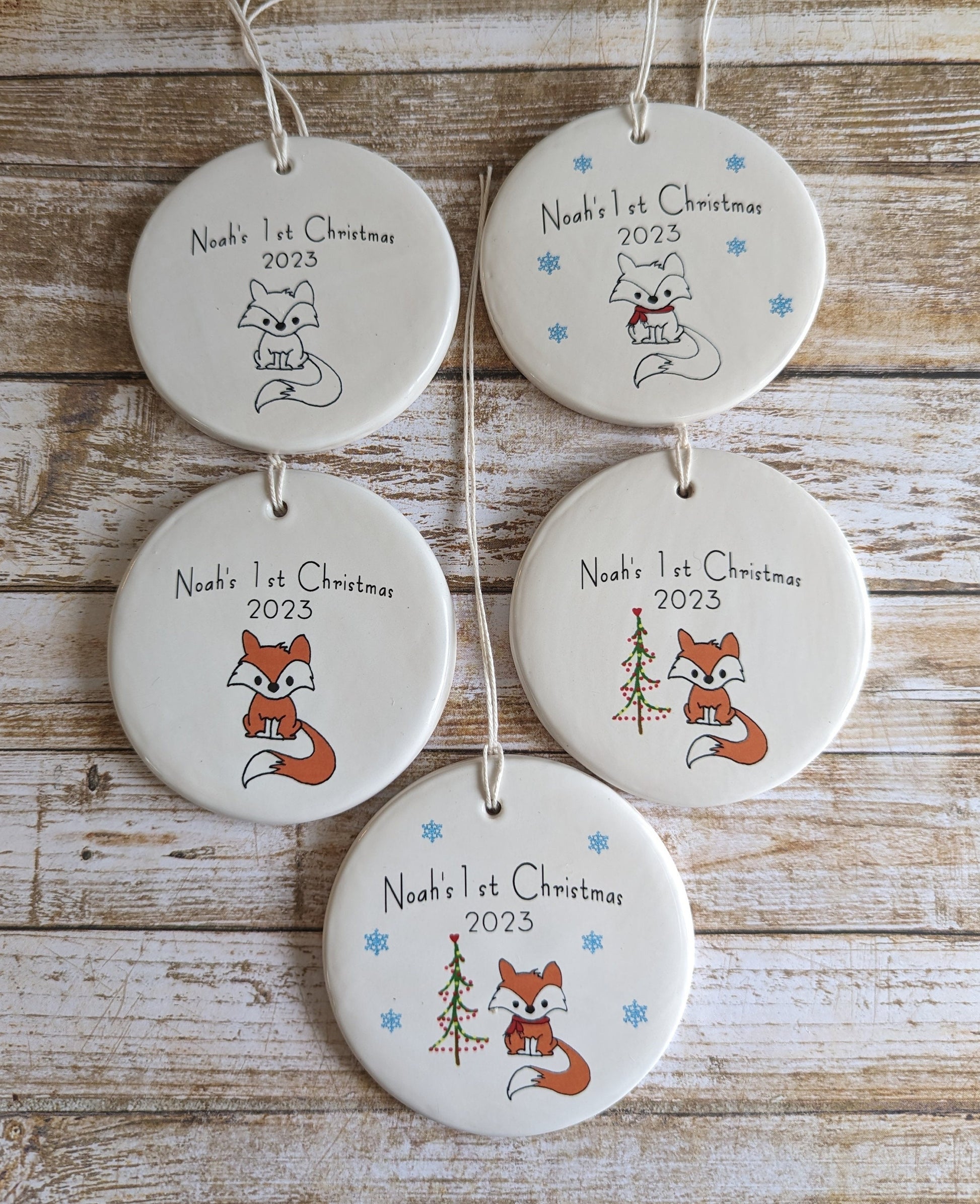 Have yourself a merry little First Christmas! Celebrate Baby's first Christmas with our personalized ceramic line drawn Christmas ornament. Choose pattern you would like from our drop-down menu. Your ornament will have baby's name and the year as well. We'll send you a draft before making your ornament. Can be shipped directly to the recipient.