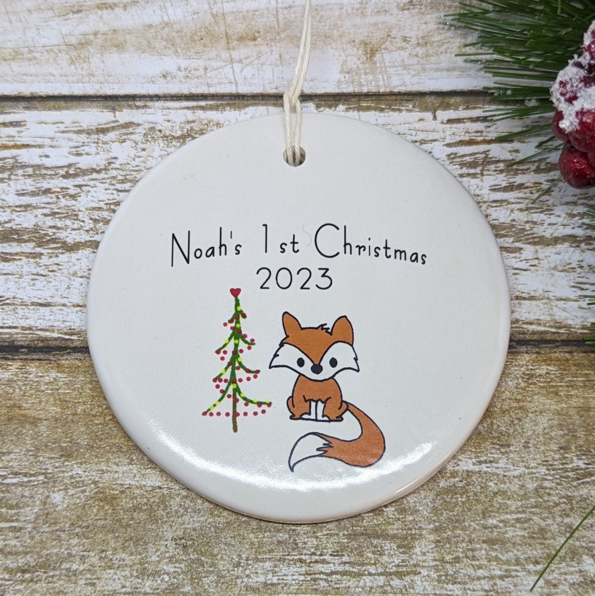 Ornament: Personalized Line Drawn Baby's First Christmas, Fox