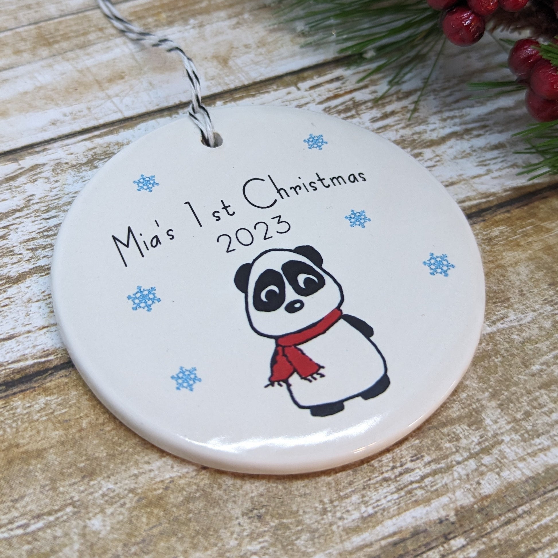 Ornament: Personalized Line Drawn Baby's First Christmas, Panda