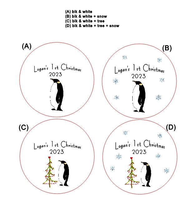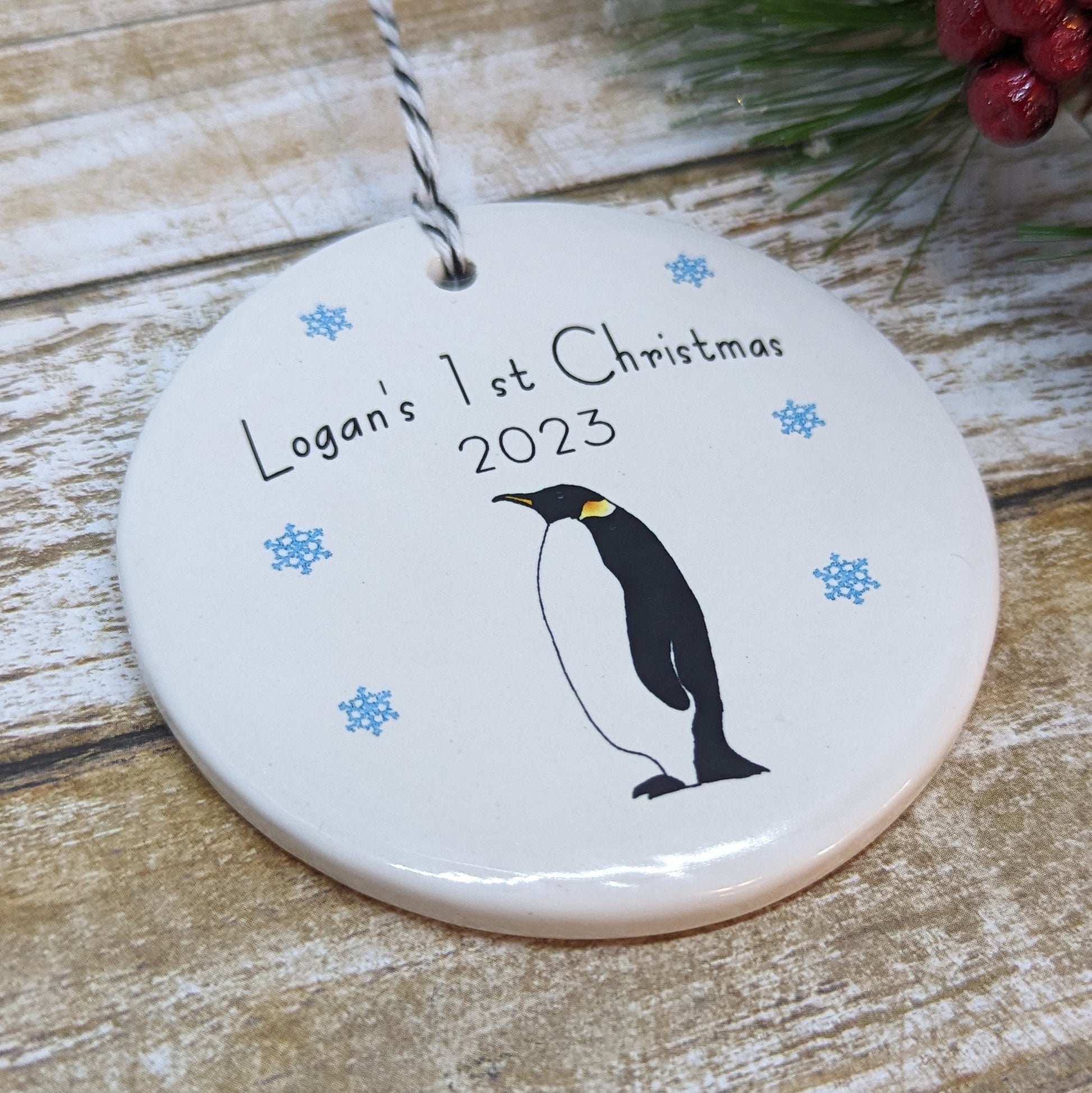 Ornament: Personalized Line Drawn Baby's First Christmas, Penguin