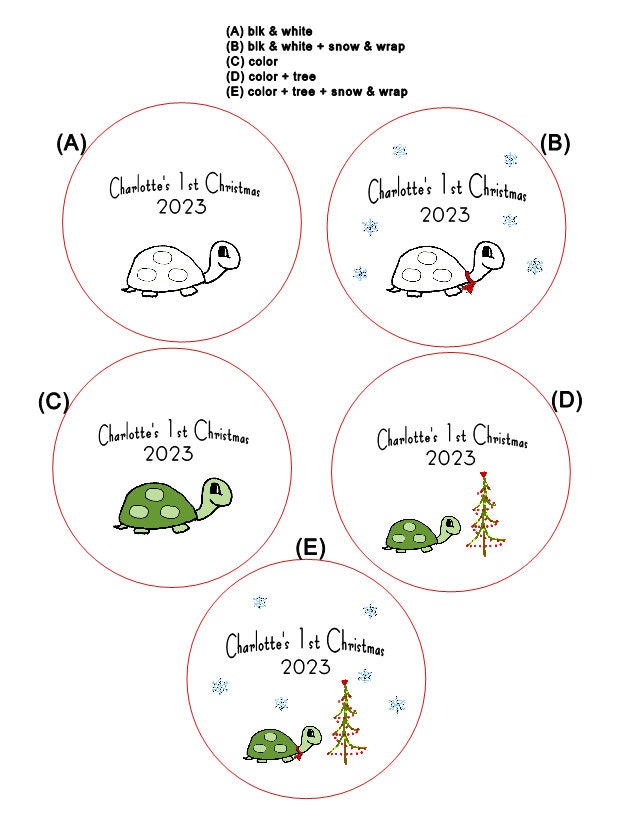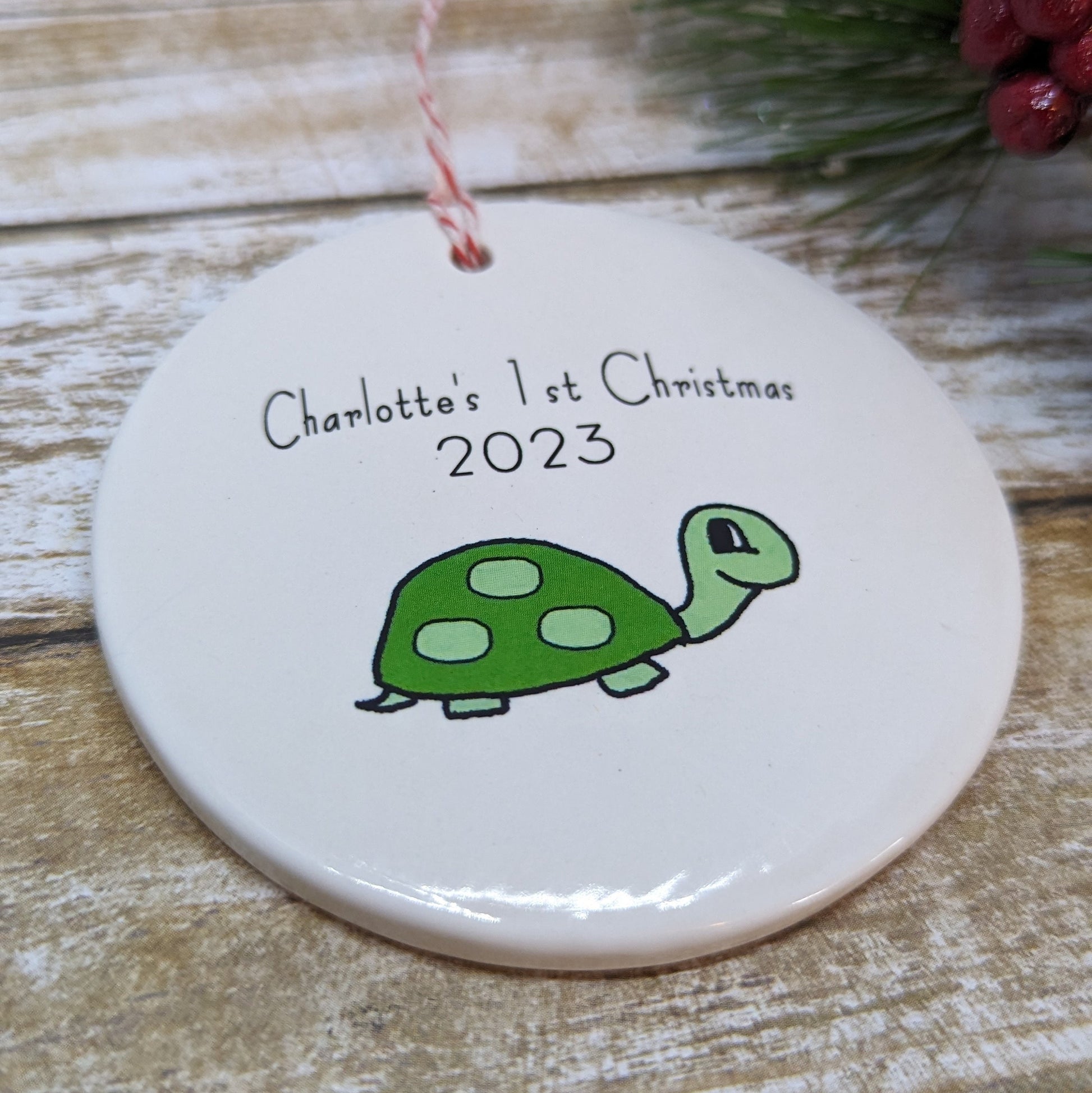 Ornament: Personalized Line Drawn Baby's First Christmas, Turtle