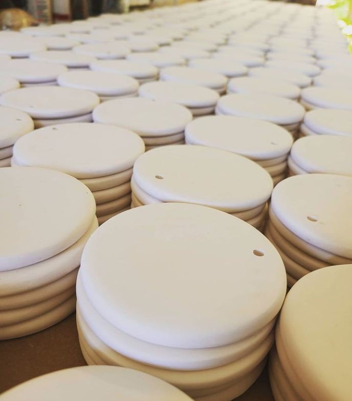 Our ceramic ornaments are fired and then glazed with a soft, natural white glaze. They are then fired again leaving the ornaments with a beautiful clean surface for your personalized image.