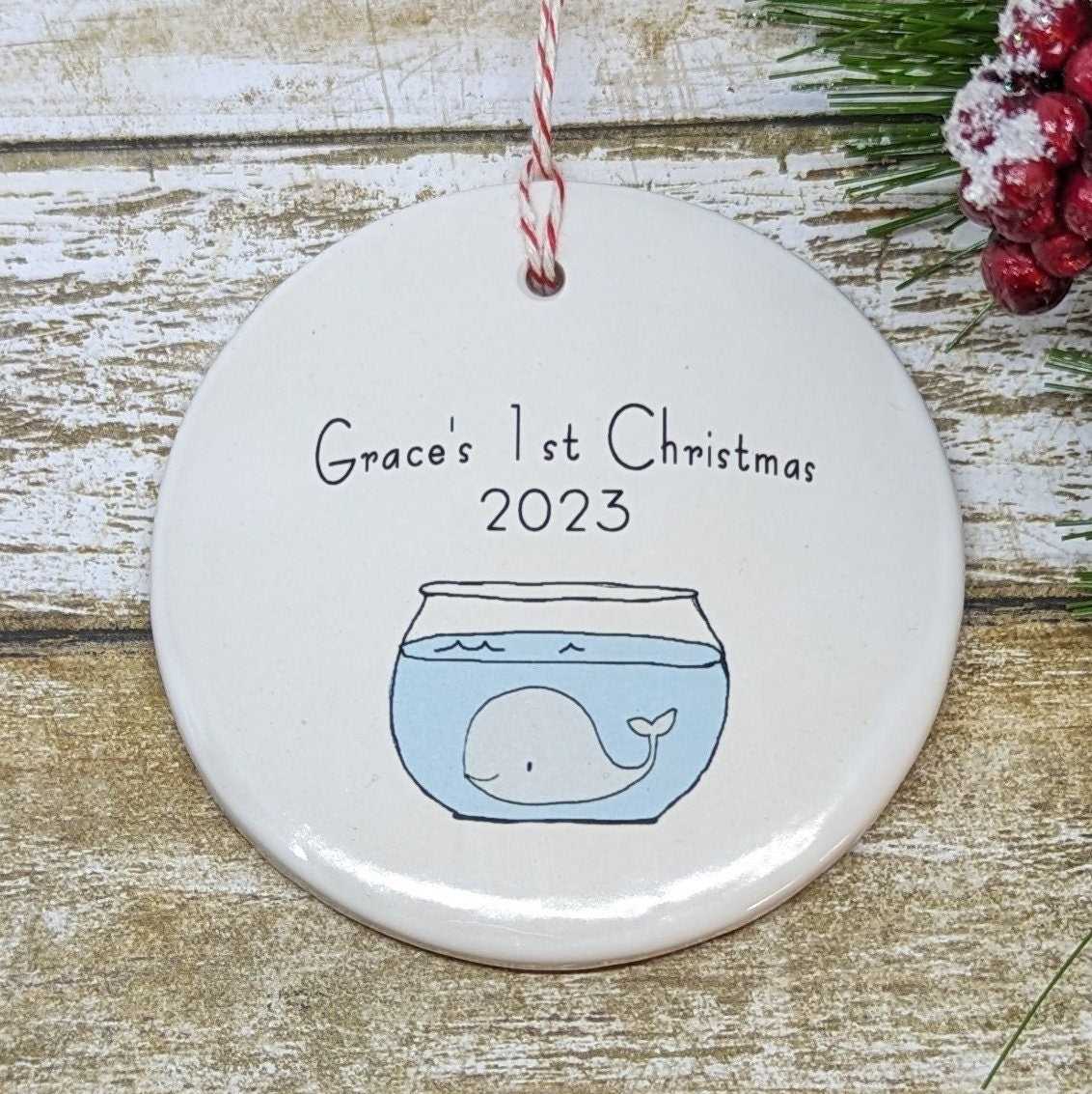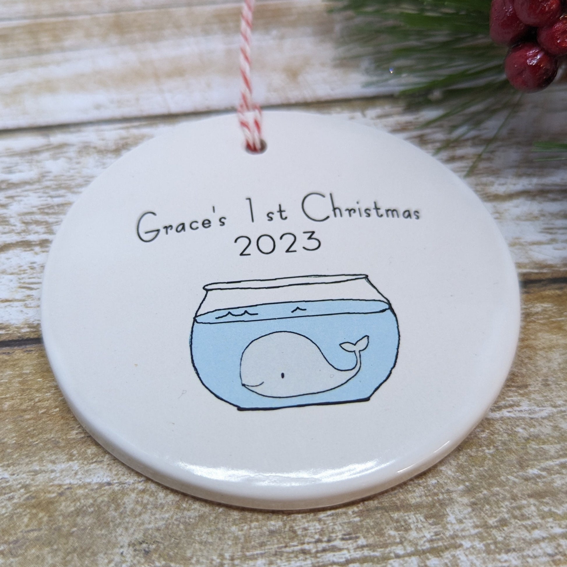 Ornament: Personalized Line Drawn Baby's First Christmas, Whale