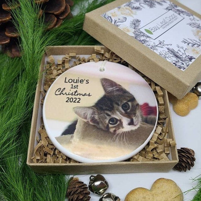 Whether you have a kitten, cat, puppy, dog, rescue or an exotic, life is just better with a pet. Our Personalized Pet Ornaments celebrate all critters, because they're family. Features a picture of your pet, their name and the year. We use different designs to fit best with the photo you provide for us. You'll receive a draft to approve before we make your final piece. Orders can be shipped directly to the recipient.