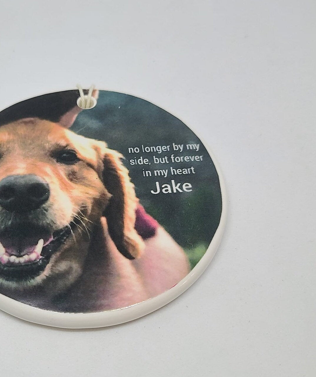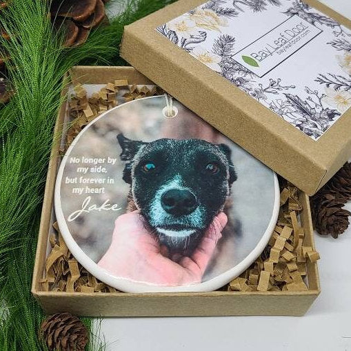 Losing a pet means saying goodbye to a loyal friend who brought unconditional love and joy. Our personalized pet memorial ornament offers a heartfelt way to honor their memory and bring comfort during a difficult time. Your ornament will display the pet's photo with a sentiment about loss (can be changed or removed). You'll receive a draft to approve before we make your final piece. Memorial ornaments can be shipped directly to the recipient.