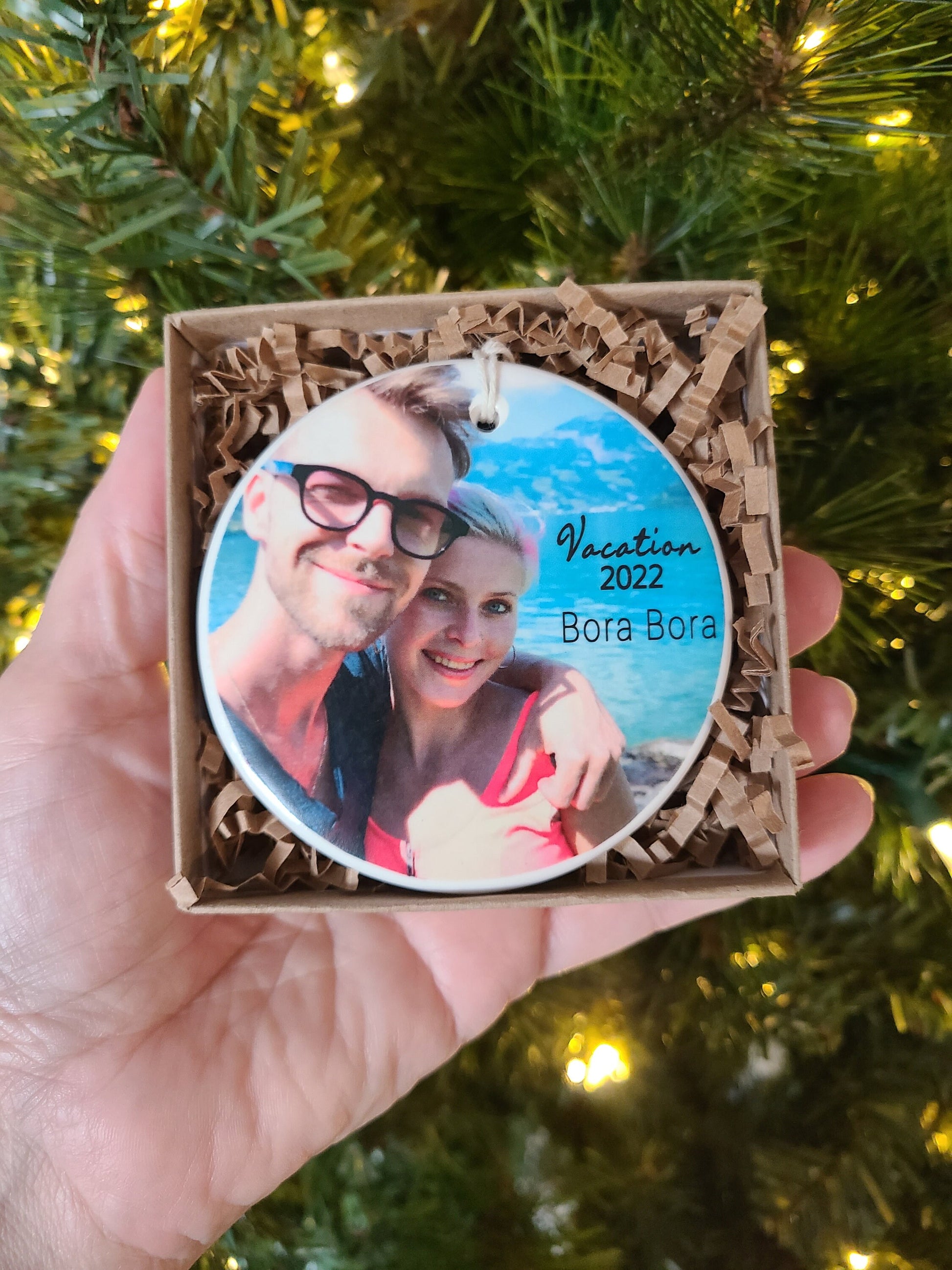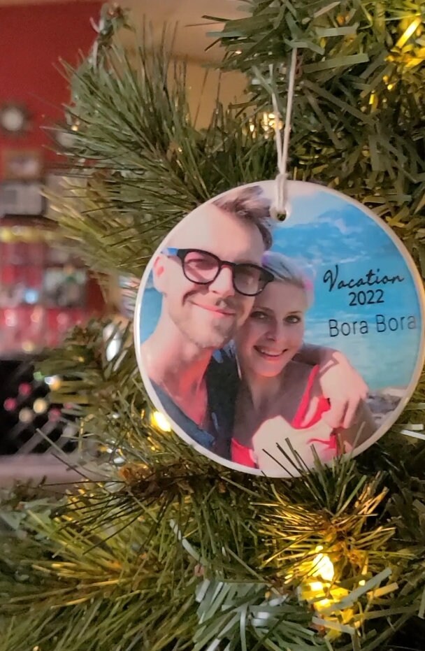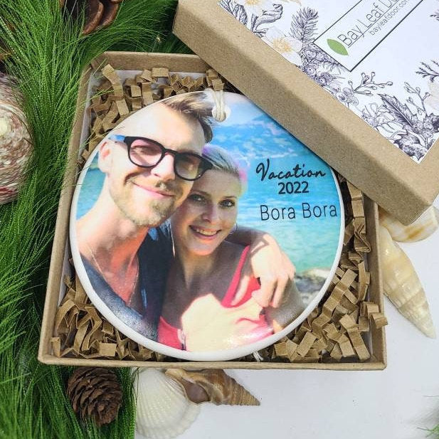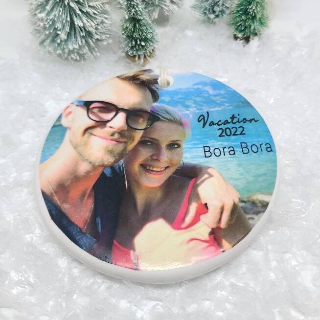 Keep the memory of your vacation together close to your heart. Our new personalized vacation ornaments will have your photo, location of your trip and the year.