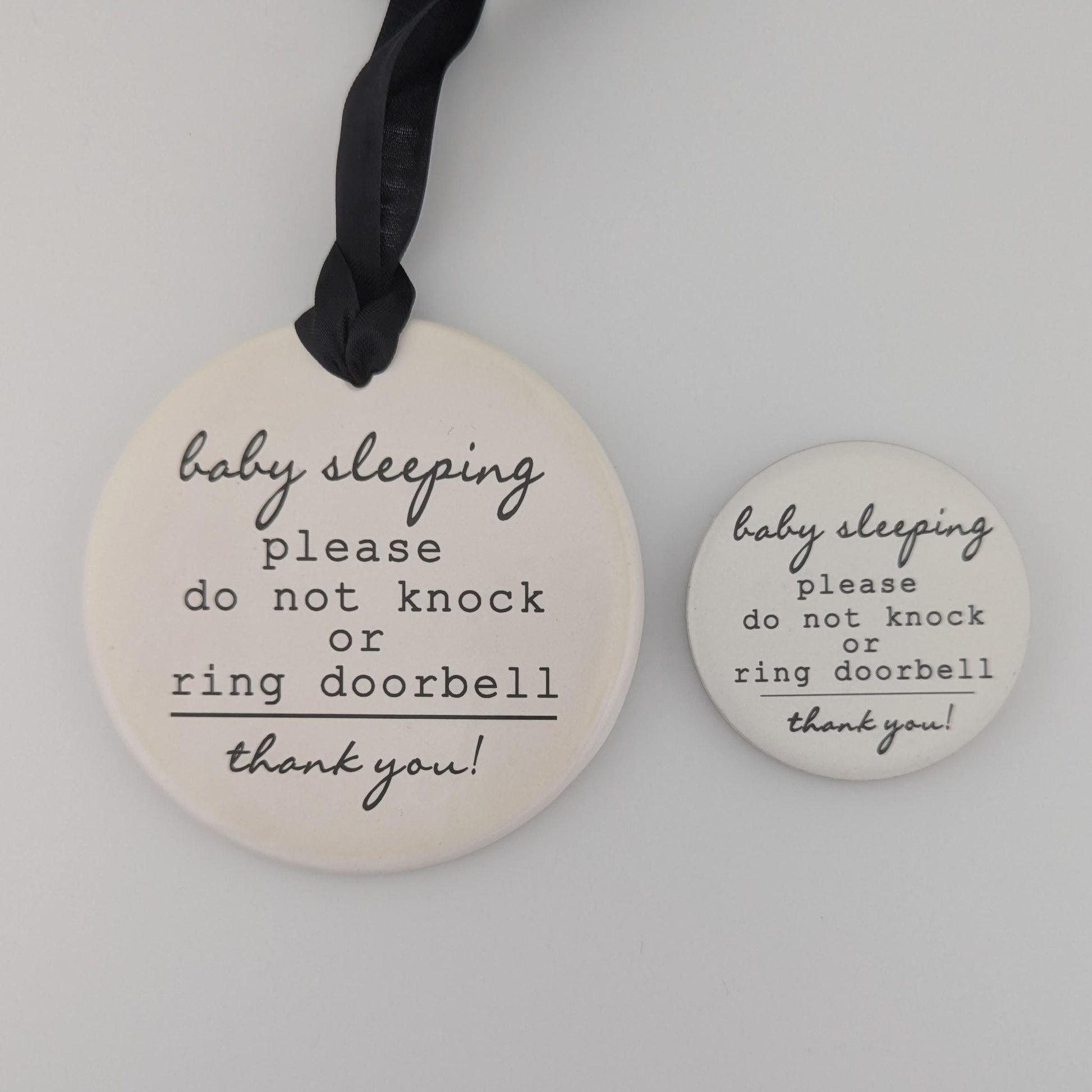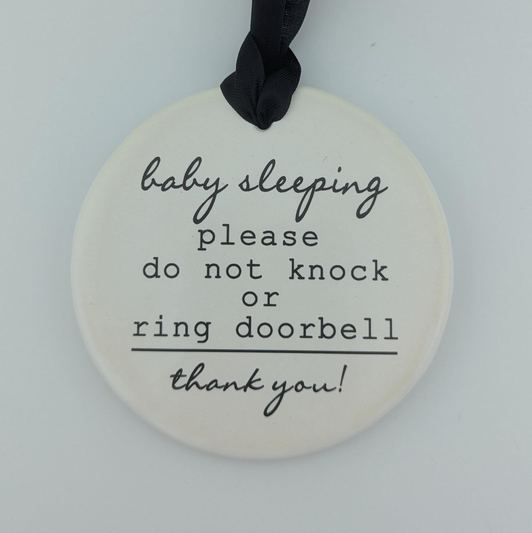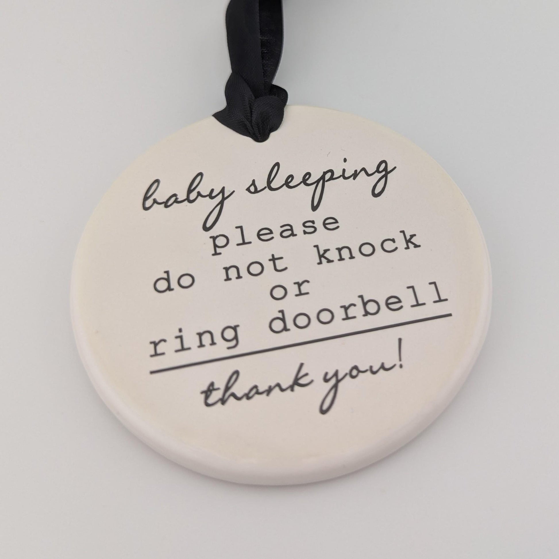 Help your little one get uninterrupted sleep with our beautifully crafted baby sleeping sign. Our small ceramic signs give an elegant touch while saying do not knock or ring doorbell.