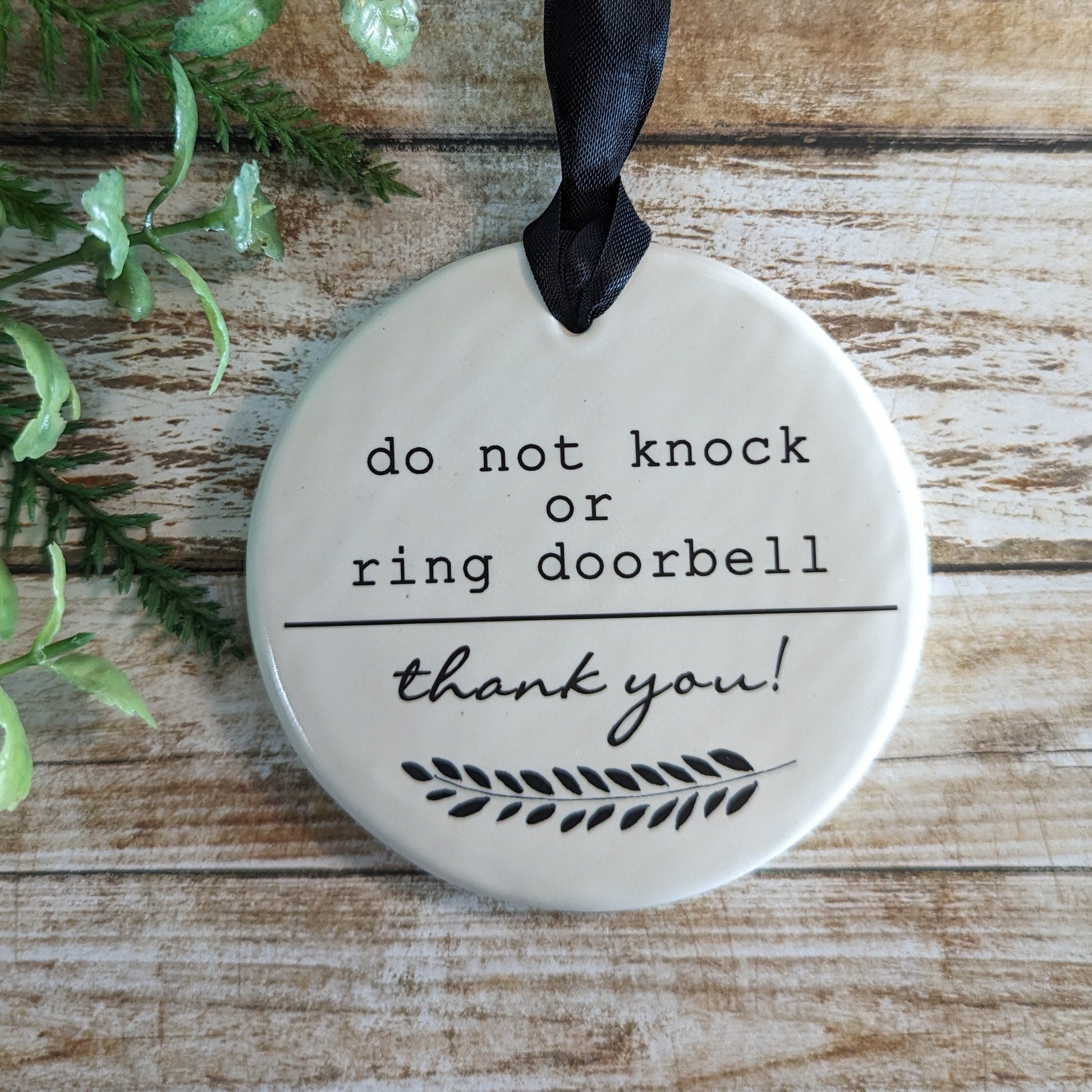 A simple yet clear message. Reading do not knock or ring doorbell, this sign is an elegant way to keep everyone away.