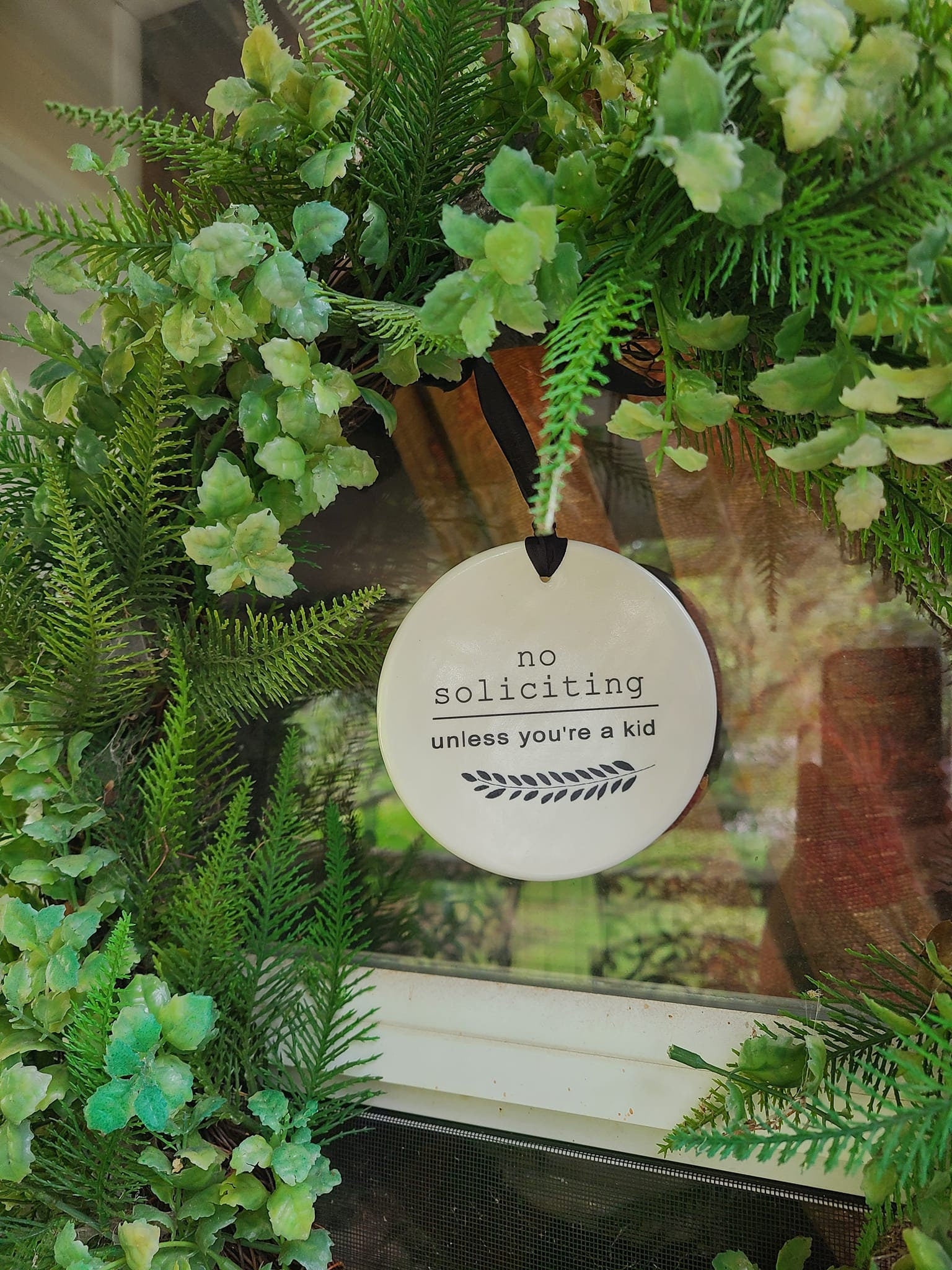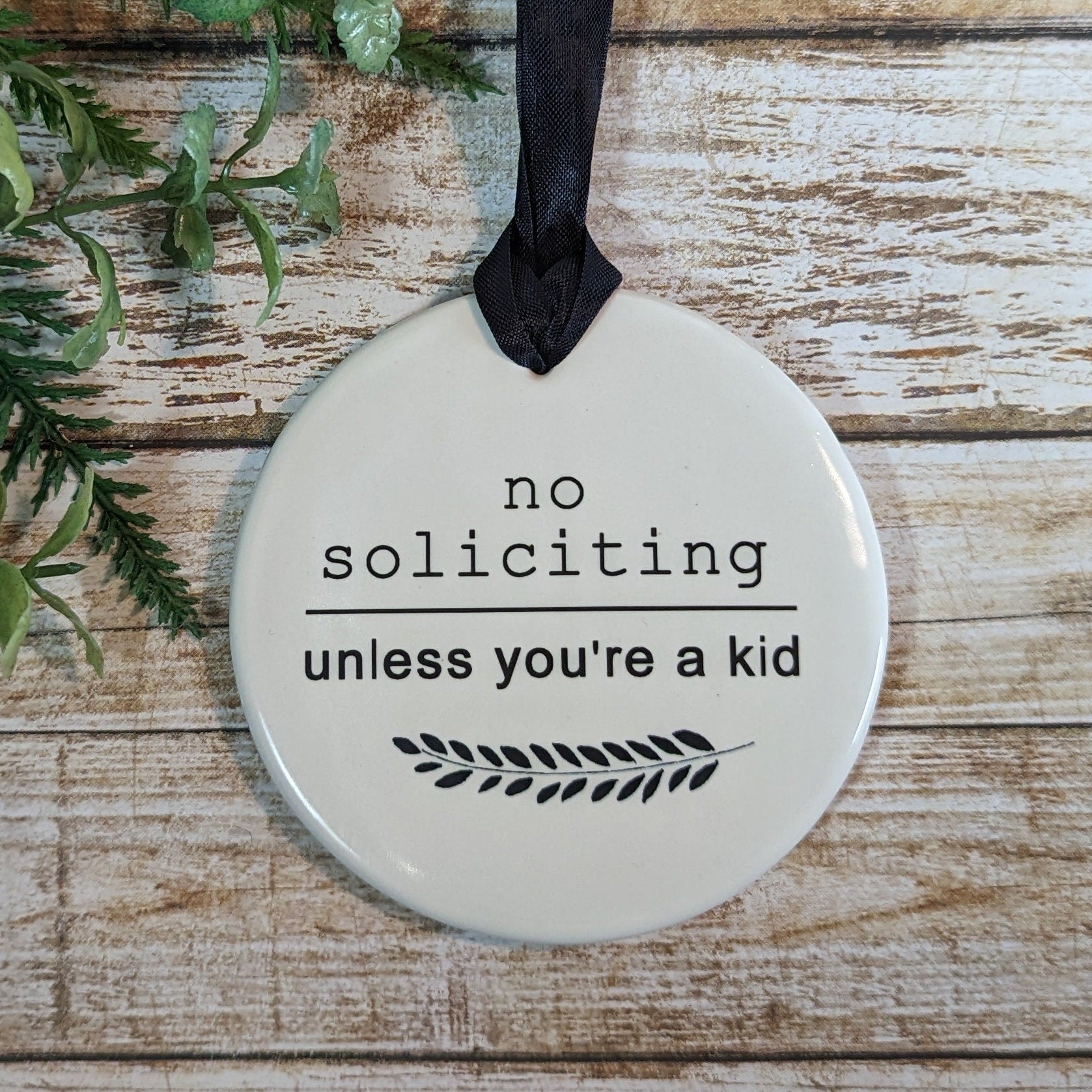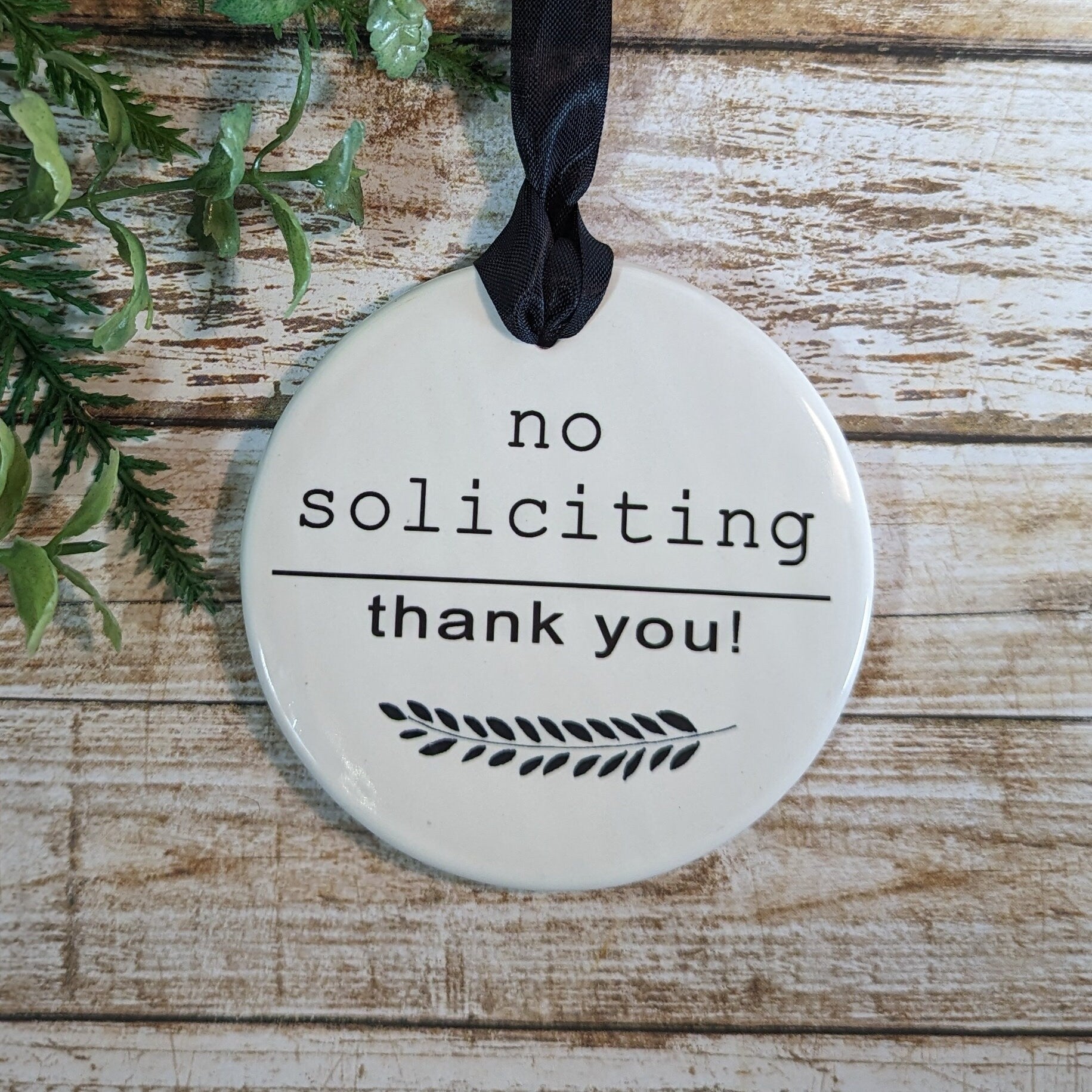 For a no soliciting sign that is still kid friendly, we've created our no soliciting unless you're selling thin mints sign. When you don't want solicitation but would still love to support kid's fundraising while enjoying some cookies, these are the perfect solution. Our ceramic signs are small and elegant.